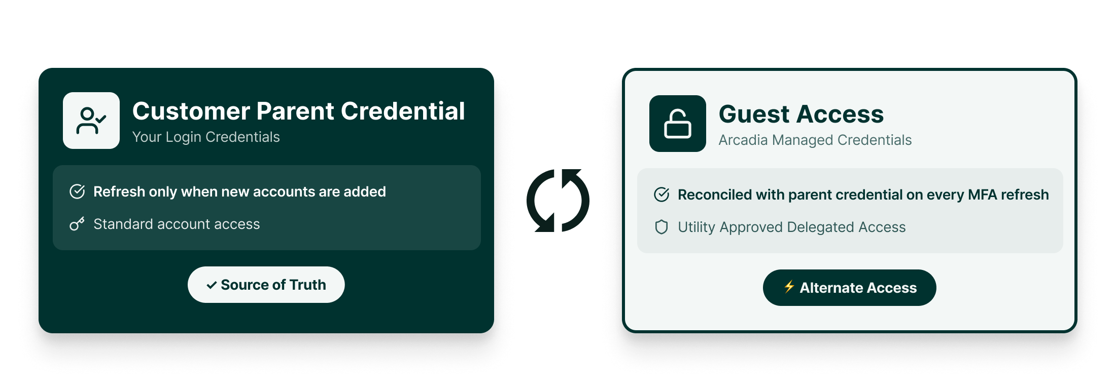 Guest Access is a provider-approved, delegated access method that allows Arcadia to securely manage and maintain a separate login to your utility provider. Not all providers have instituted Guest Access access but, for those that do, it's often a secure, efficient way to work around MFA access limitations. This guide explains how Guest Access works, how to manage your connections, and how to interpret connection health.